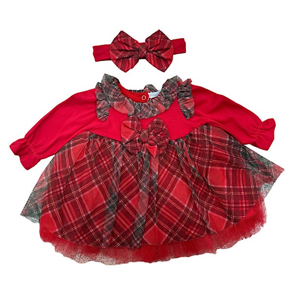 Red Tartan Tulle Christmas Dress & Headband 3-24M