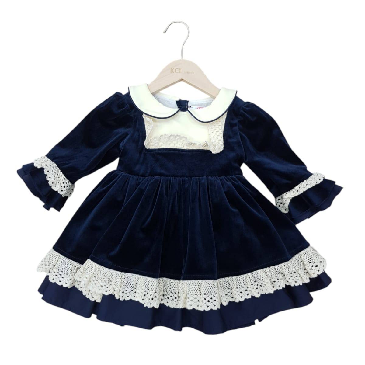 Navy Velvet Laced Frill Dress 3-24M