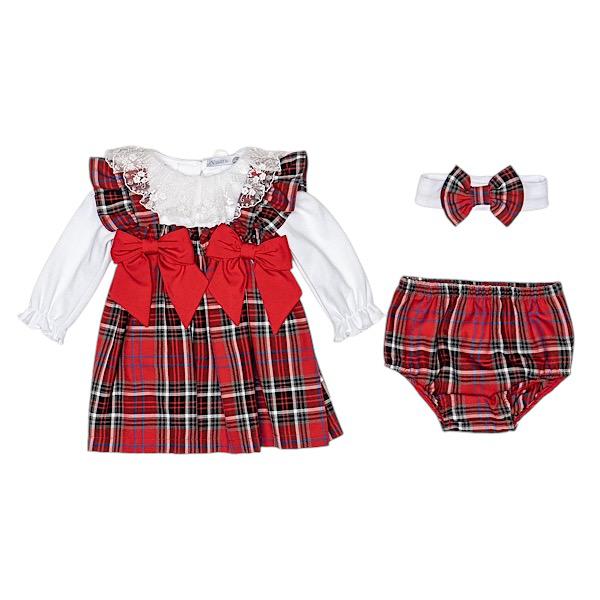 Red Tartan Bow 2PC Dress & Headband 6-24M