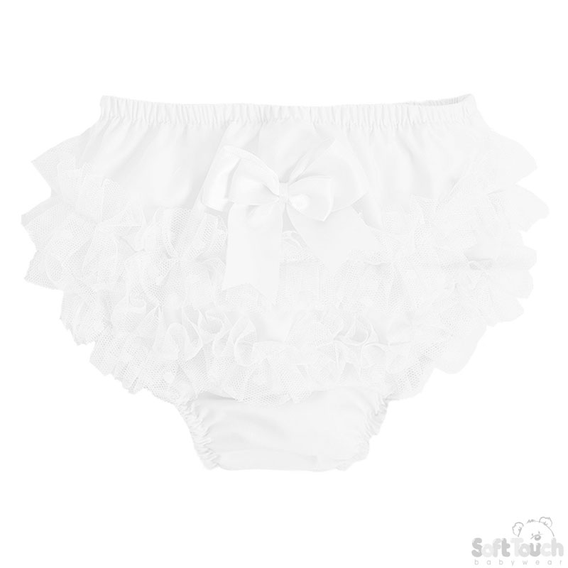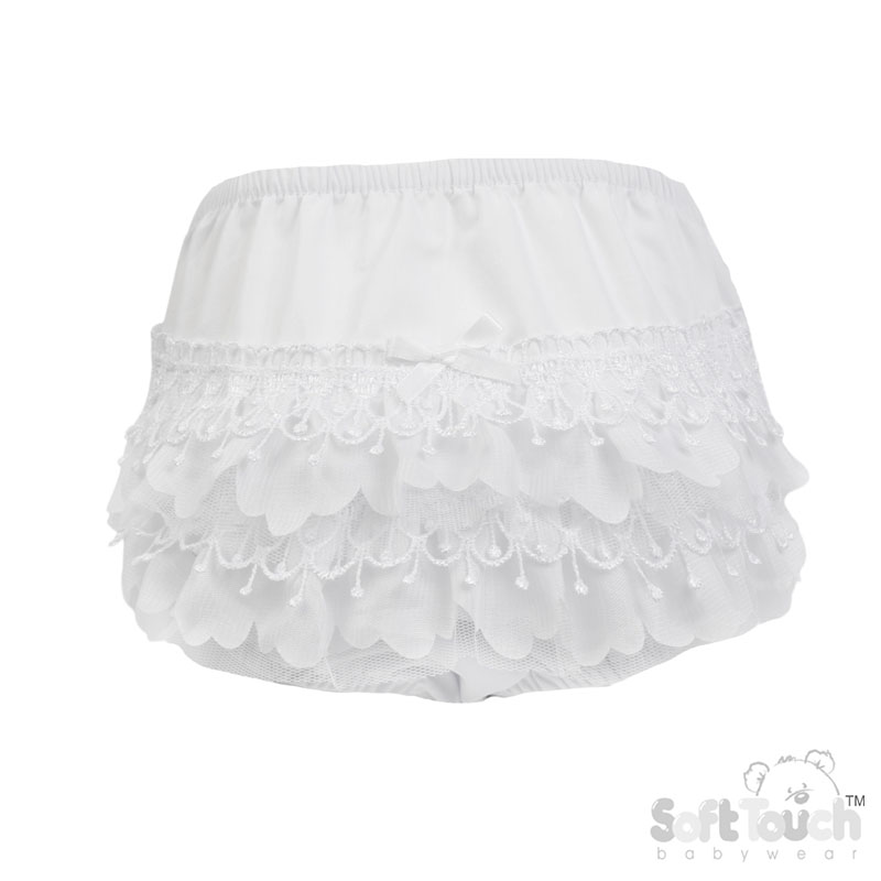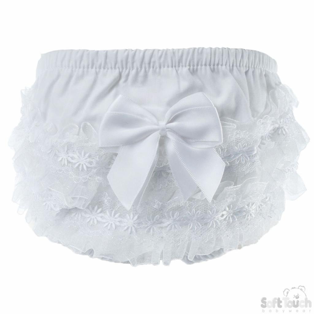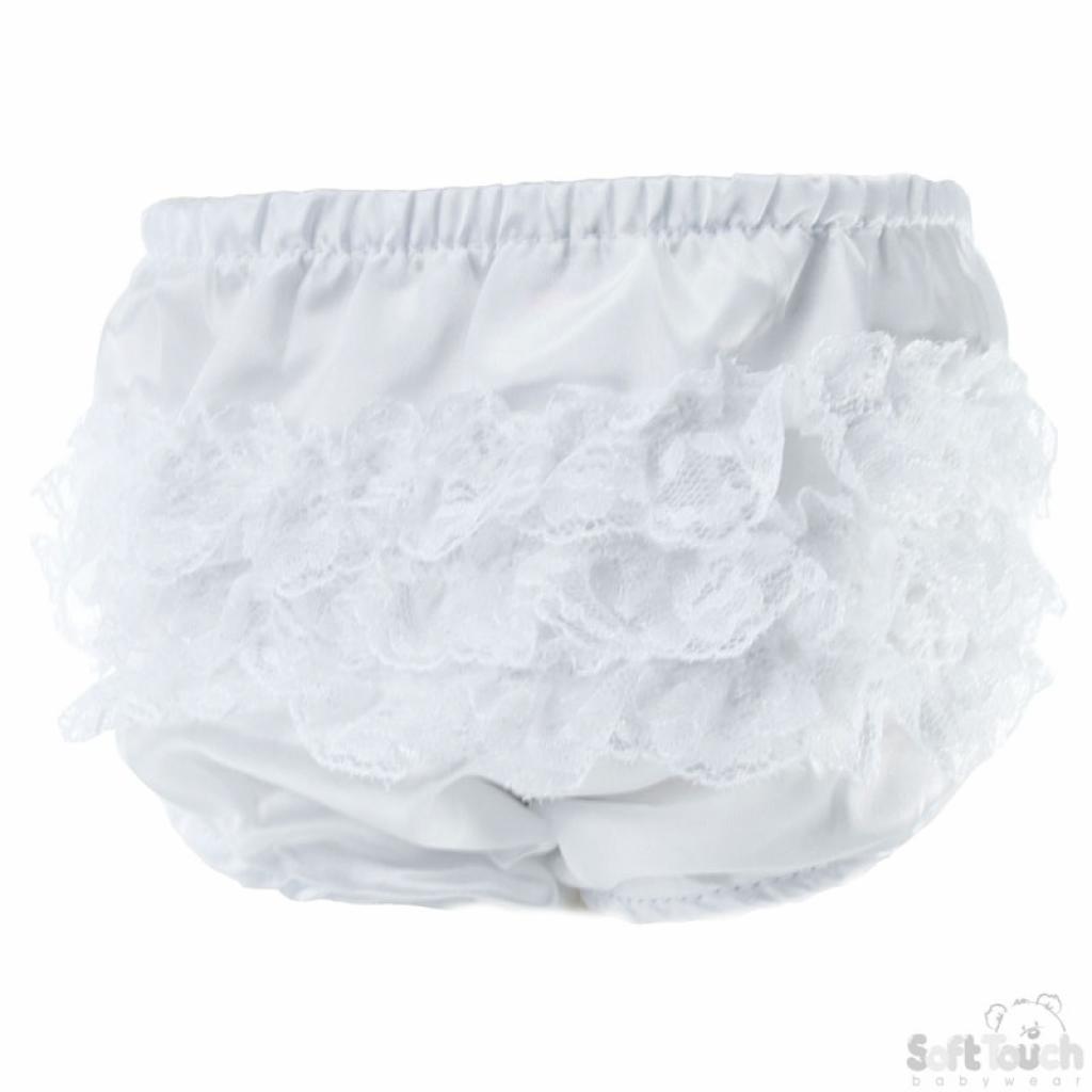 White Bell Lace Frilly Pants 0-18M