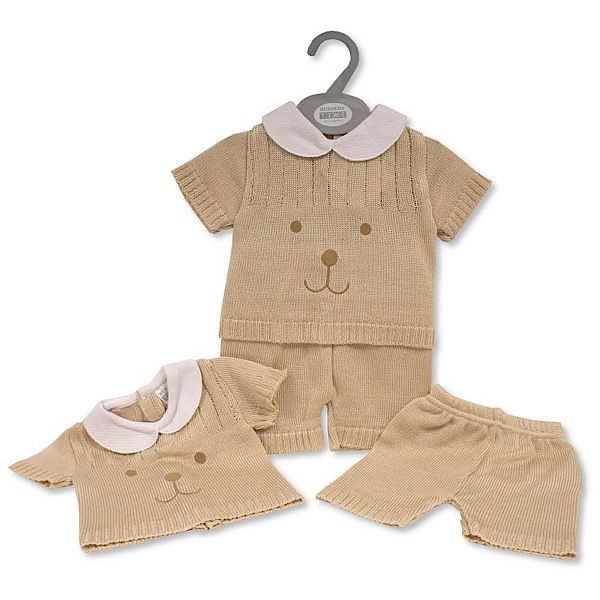 Beige 2pc Puppy Print Short Set Outfit NB-9M