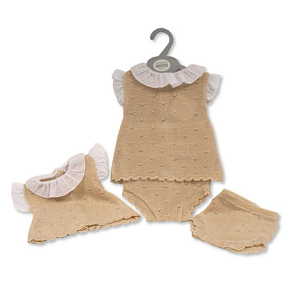 Beige and White 2pc Frilled Collar Jam Pant Outfit NB-9M