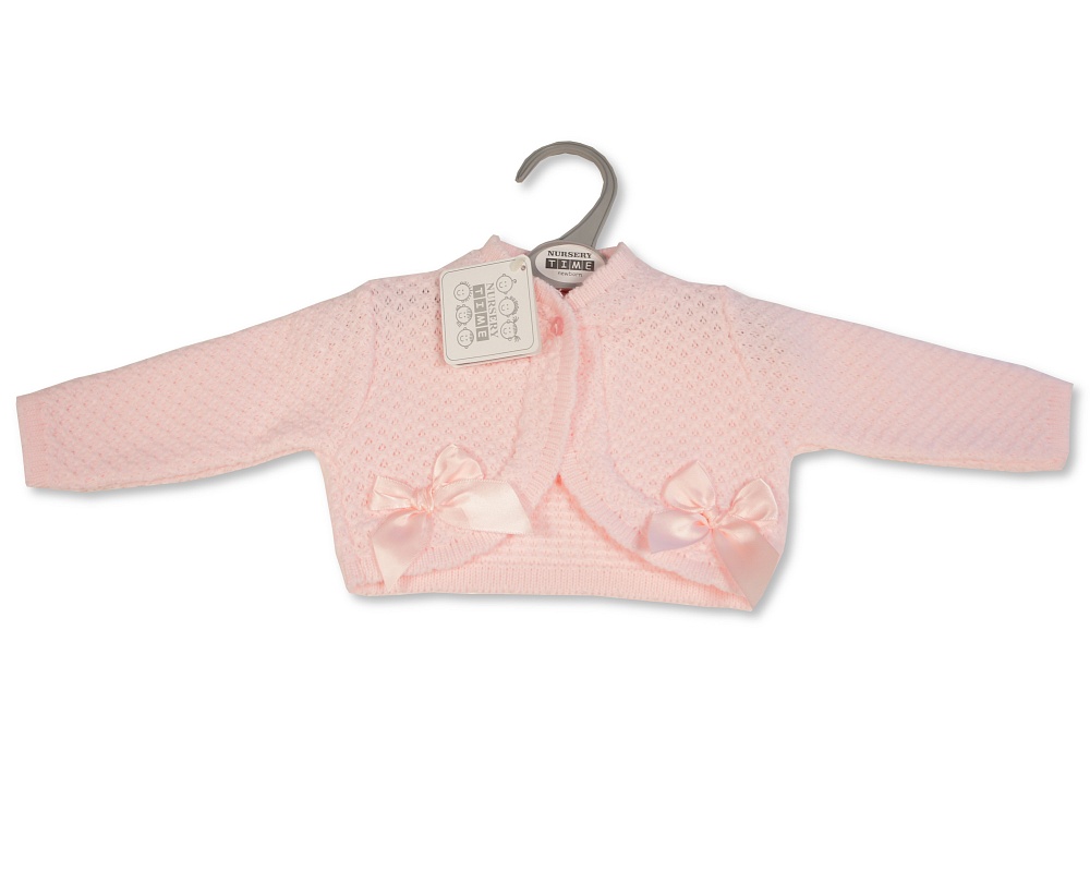 B/Pink Double Satin Bow Knitted Bolero NB-9M