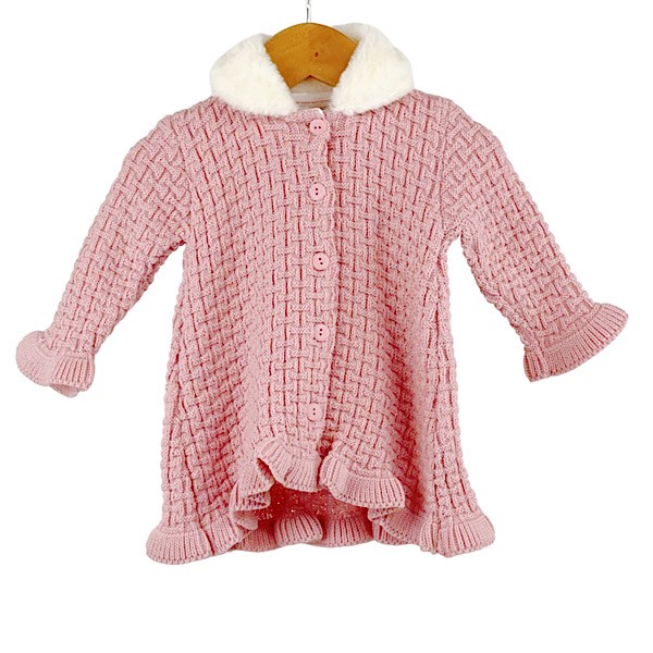 Pex Baby Pink Knitted Kayleigh Coat 0-18M