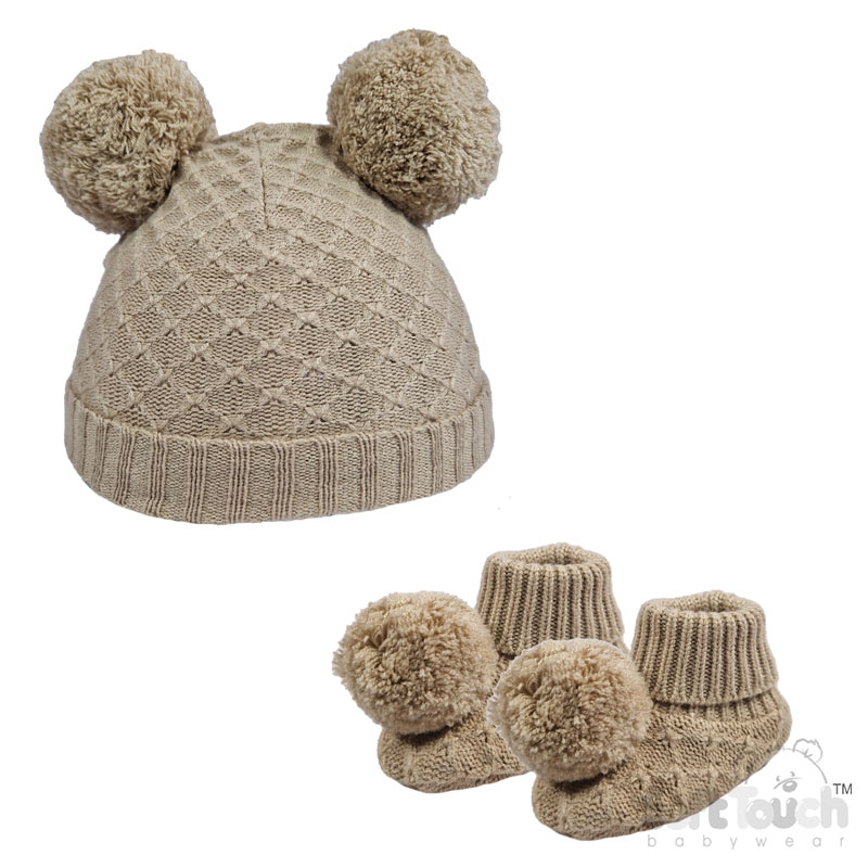 Biscuit Pom Pom Hat & Booties Set NB-12M