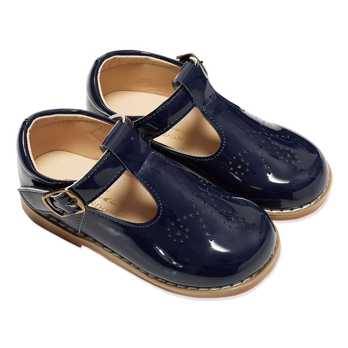Baby Navy Perforated T-Bar Patent Shoes 3-10 (Infant Sizes)