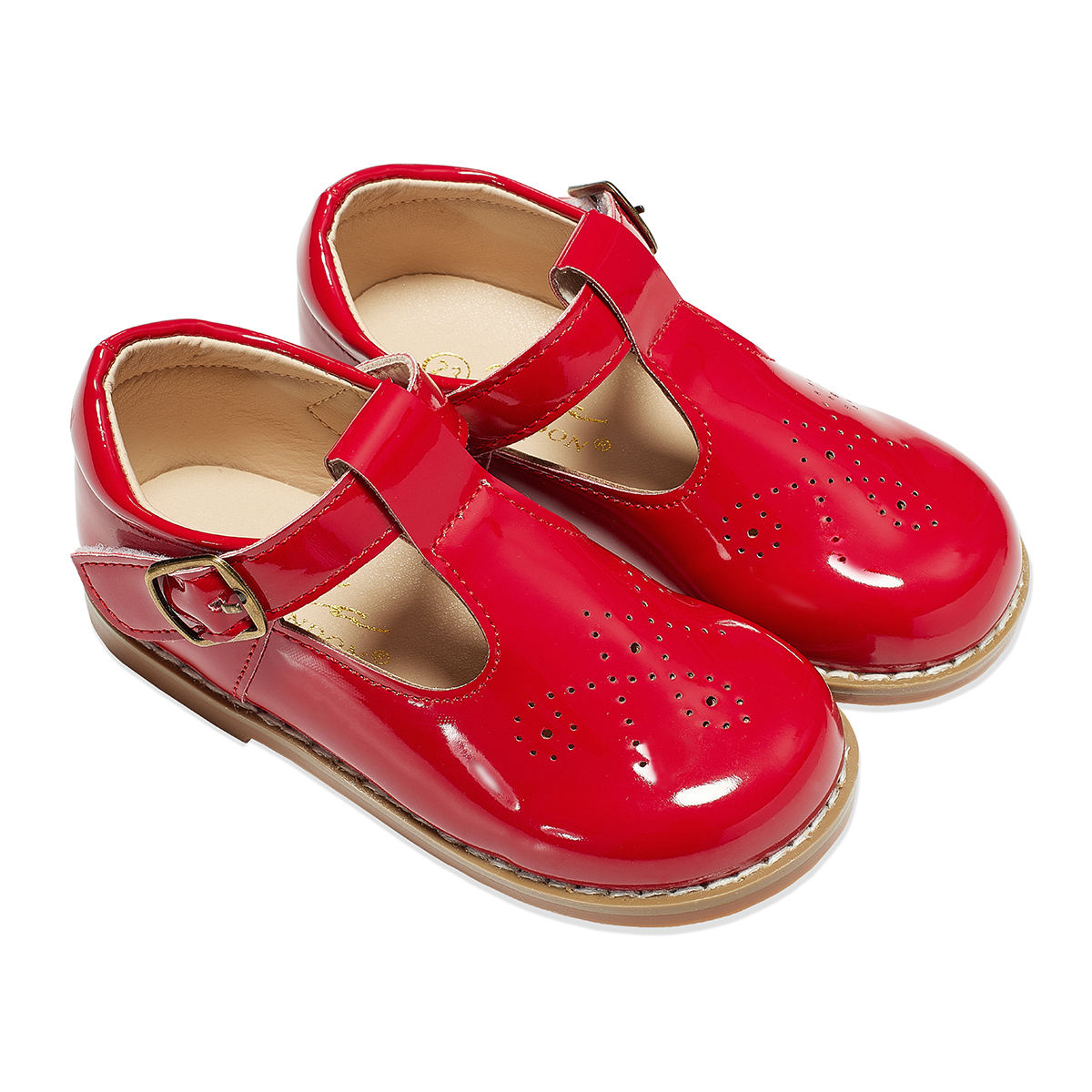 Baby Red Perforated T-Bar Patent Shoes 3-10 (Infant Sizes)