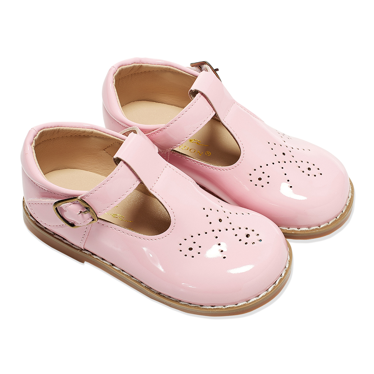 Baby Pink Perforated T-Bar Patent Shoes 3-10 (Infant Sizes)