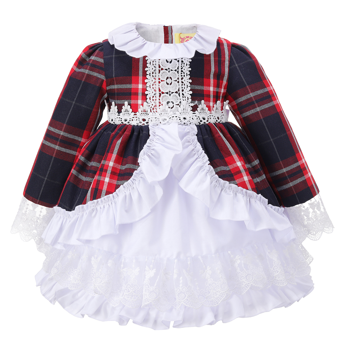 Wine Tartan Laced Spanish Dress & Knicker Christmas Set 0-24M