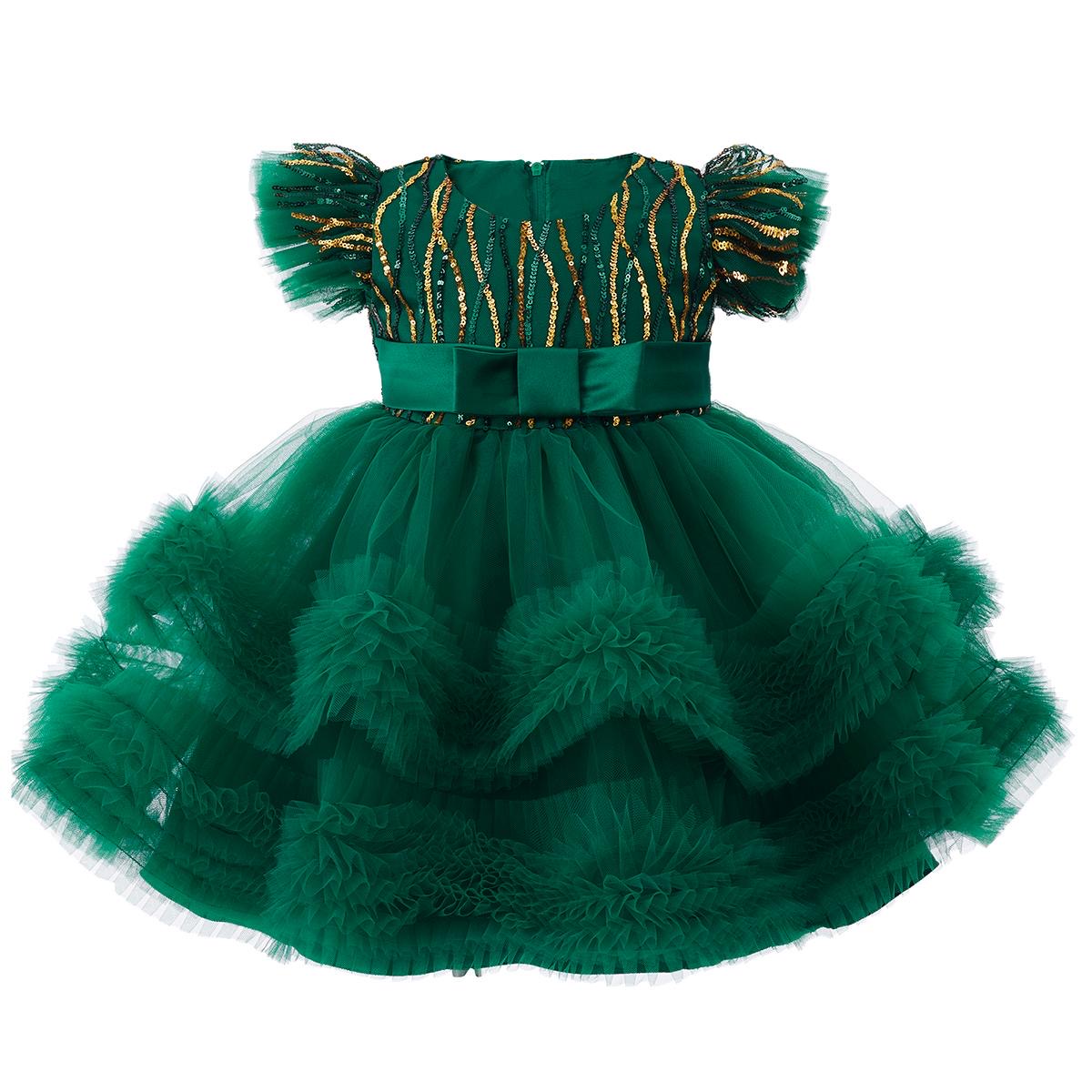B/Green Sequin Rara Ruffle Party Dress 6-24M