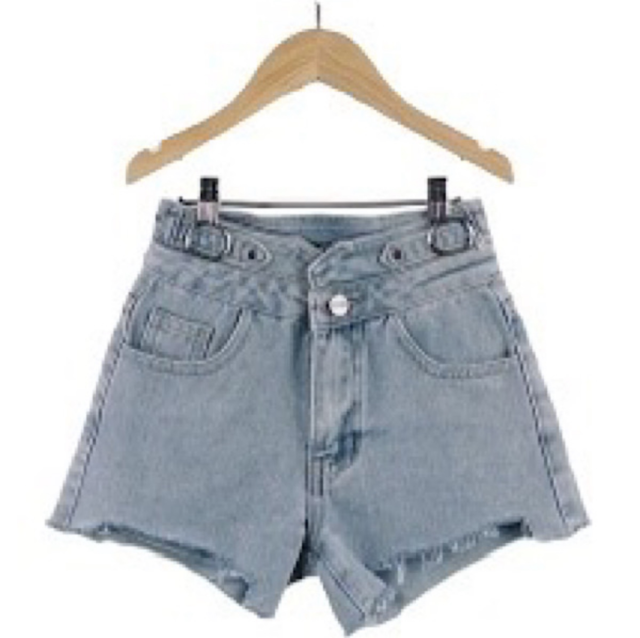 Washed Blue Paperbag Wideleg Belt Denim Shorts 4-14