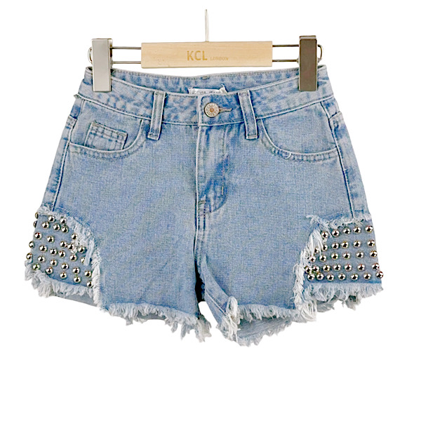 Light Blue High Waisted Rip Denim Shorts 4-14