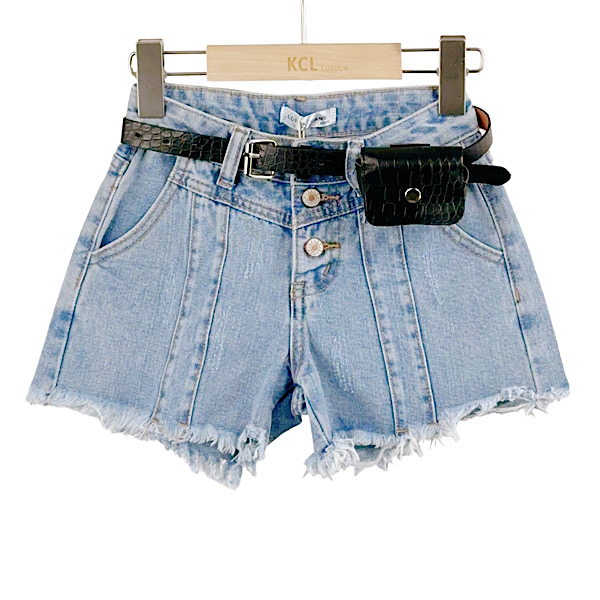 Washed Blue Tailored Pocket Belt Denim Shorts 4-14