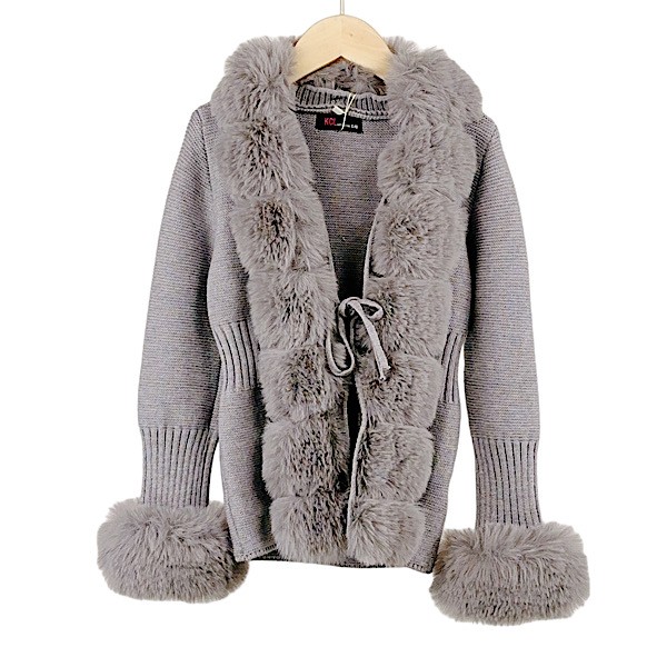 Grey Panel Faux Fur Tie Cardigan Coat 4-13