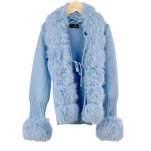 Blue Panel Faux Fur Tie Cardigan Coat 4-13