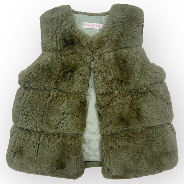 Khaki Fur Panel Padded Gilet 4-14