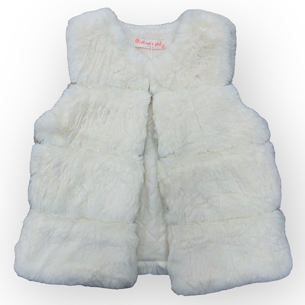 Cream Fur Bow Broach Gilet Jacket 4-14