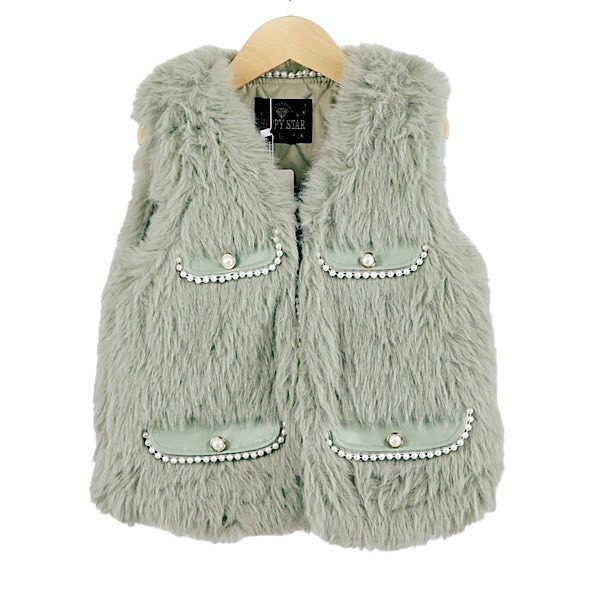 Mint Green Fur Pearl Gilet Jacket 4-14