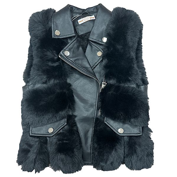 Black Fur Leather Gilet Jacket 2-14