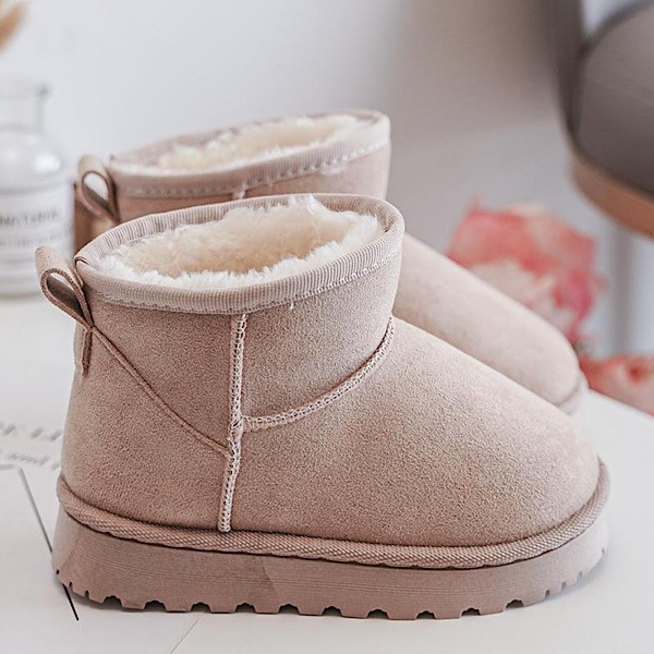 Kids Beige Sheepskin Suede Look Boots 31-36 EU Size