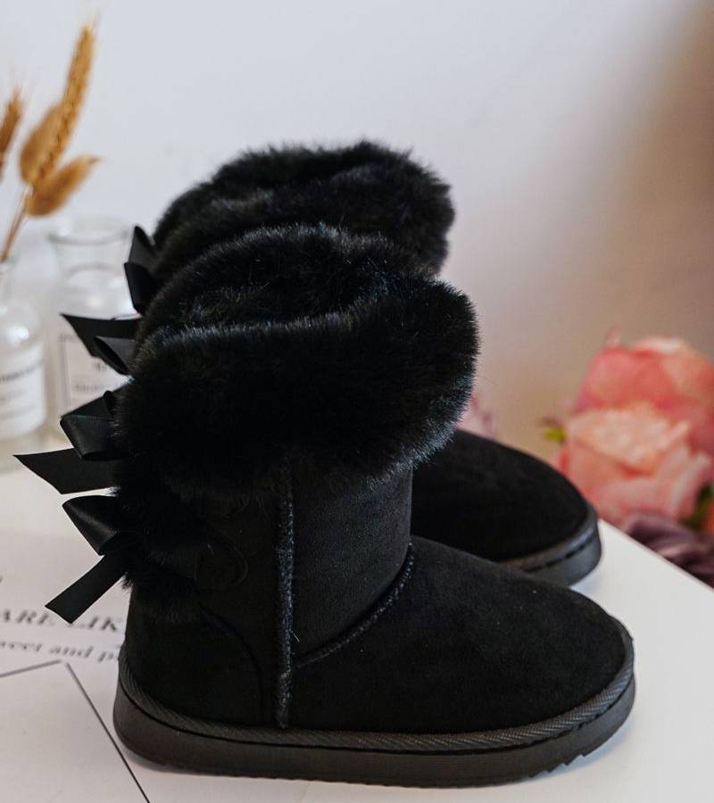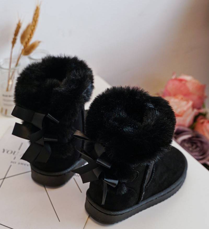 Black Bow Sheepskin Suede Boots 31-36 EU 12.5 to 3 UK