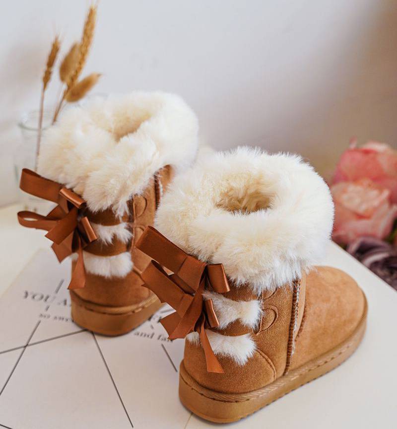 Beige Bow Sheepskin Suede Boots 31-36 EU 12.5 to 3 UK