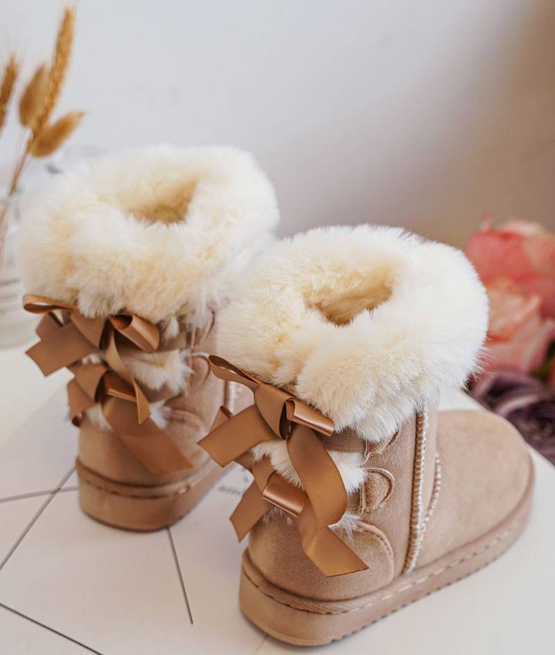 Beige Bow Sheepskin Suede Boots 25-30 EU 8-12 UK