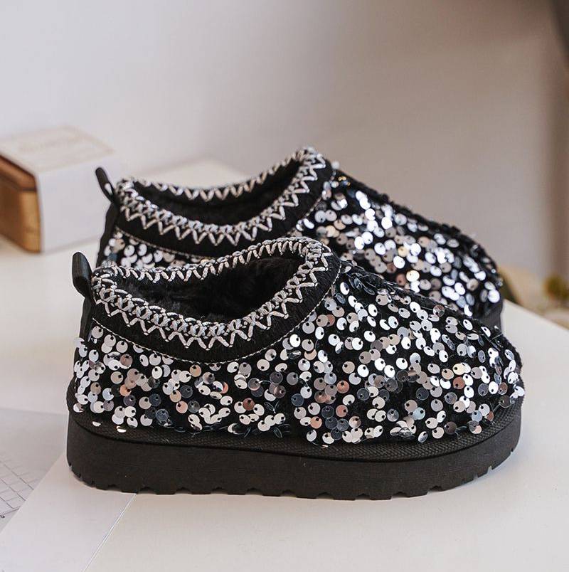 Black/Silver Sheepskin Sequin Slipper Shoes (25-30 EU) UK 8-12