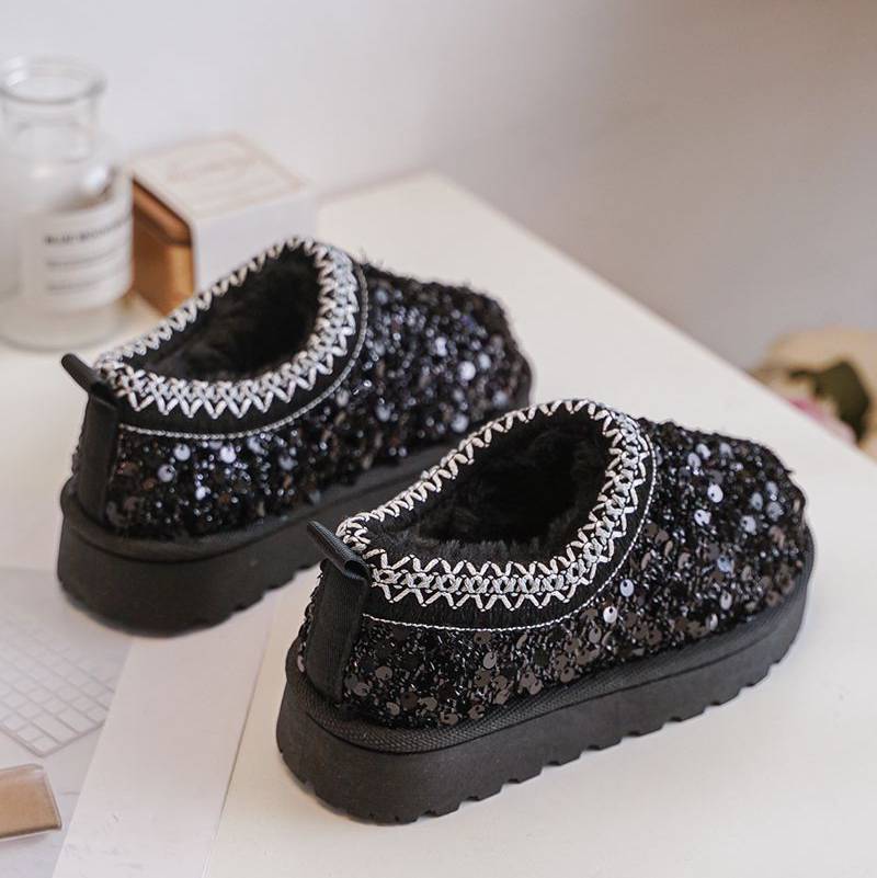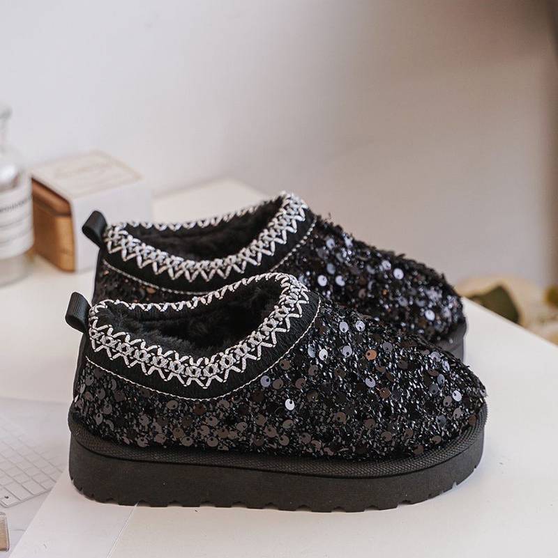 Black Sheepskin Sequin Slipper Shoes UK 12.5-3 (31-36 EU)