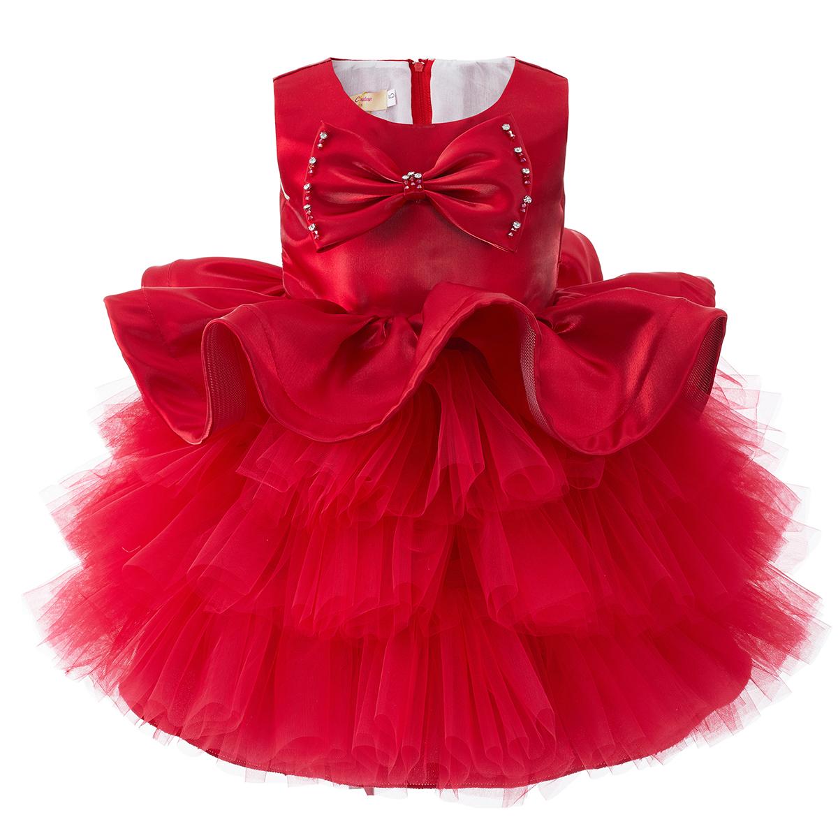 Red Bow Ruffle Rara Tulle Party Dress 1-5