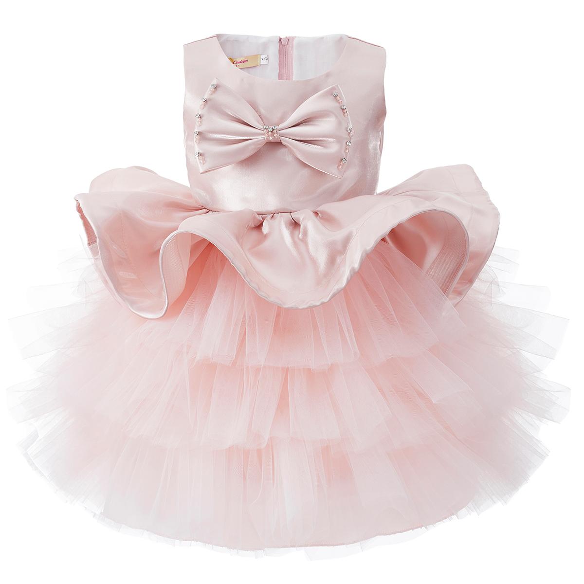 Pink Bow Ruffle Rara Tulle Party Dress 1-5