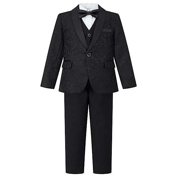 Boys Black 5pc Paisley Print Suit 1-13 Years