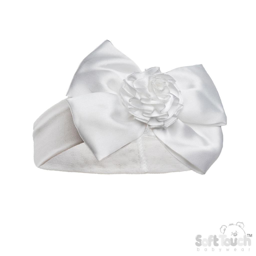 Baby Ivory White Bow 2PC Hat & Headband Set