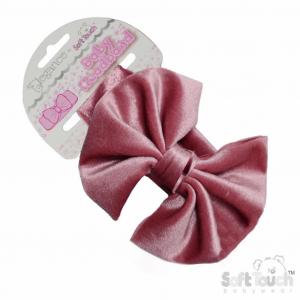 D/Pink Velour Bow Headband