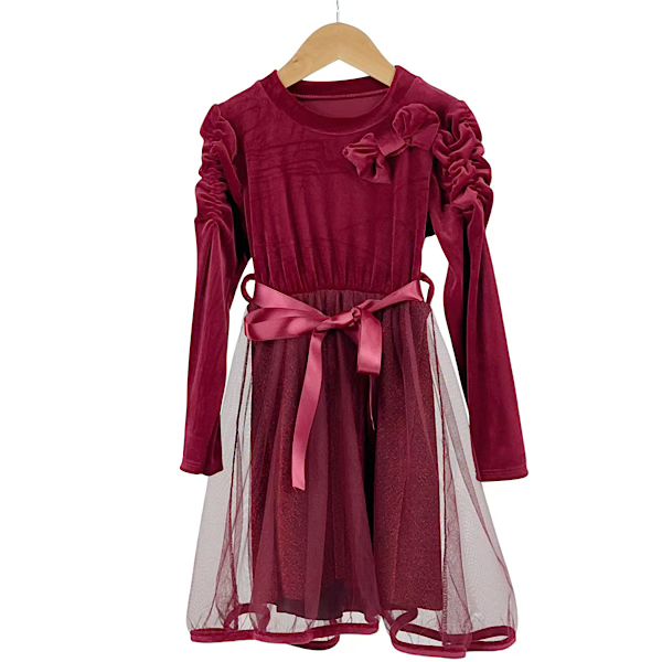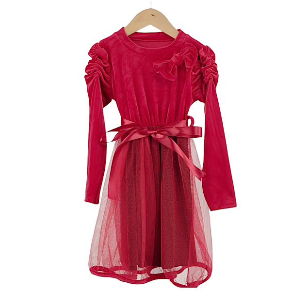 Red Velour Lace Ruffle Xmas Dress 2-10