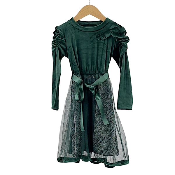 Navy Velour Lace Ruffle Xmas Dress 2-10