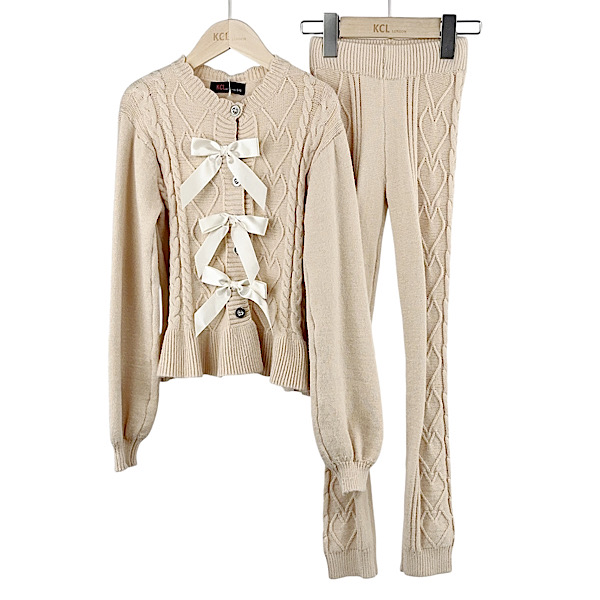 Beige Cable Twist Peplum Bow Co-ord Set 2-10