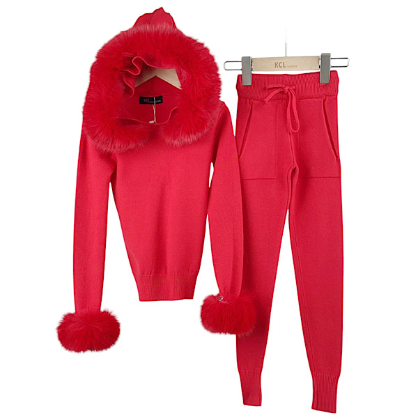 Red Shoulder Faux Fur Hood Co-ord Set 4-13