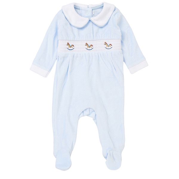 Blue Rocking Horse Smock All-In-One Outfit 0-9M