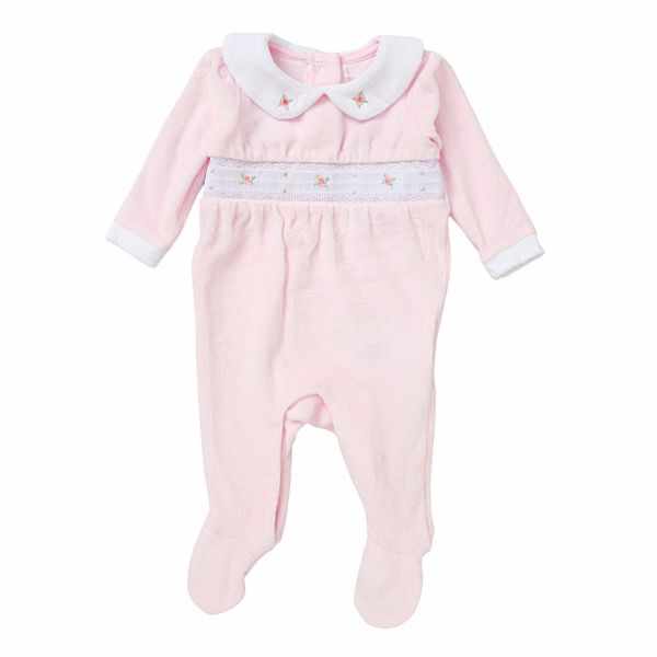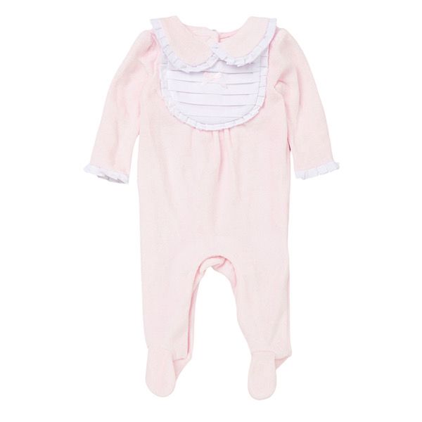 Pink Velour Pleat Neck All-In-One Outfit 0-9M