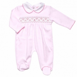 Pink Rose Floral Smock All-In-One Outfit 0-9M