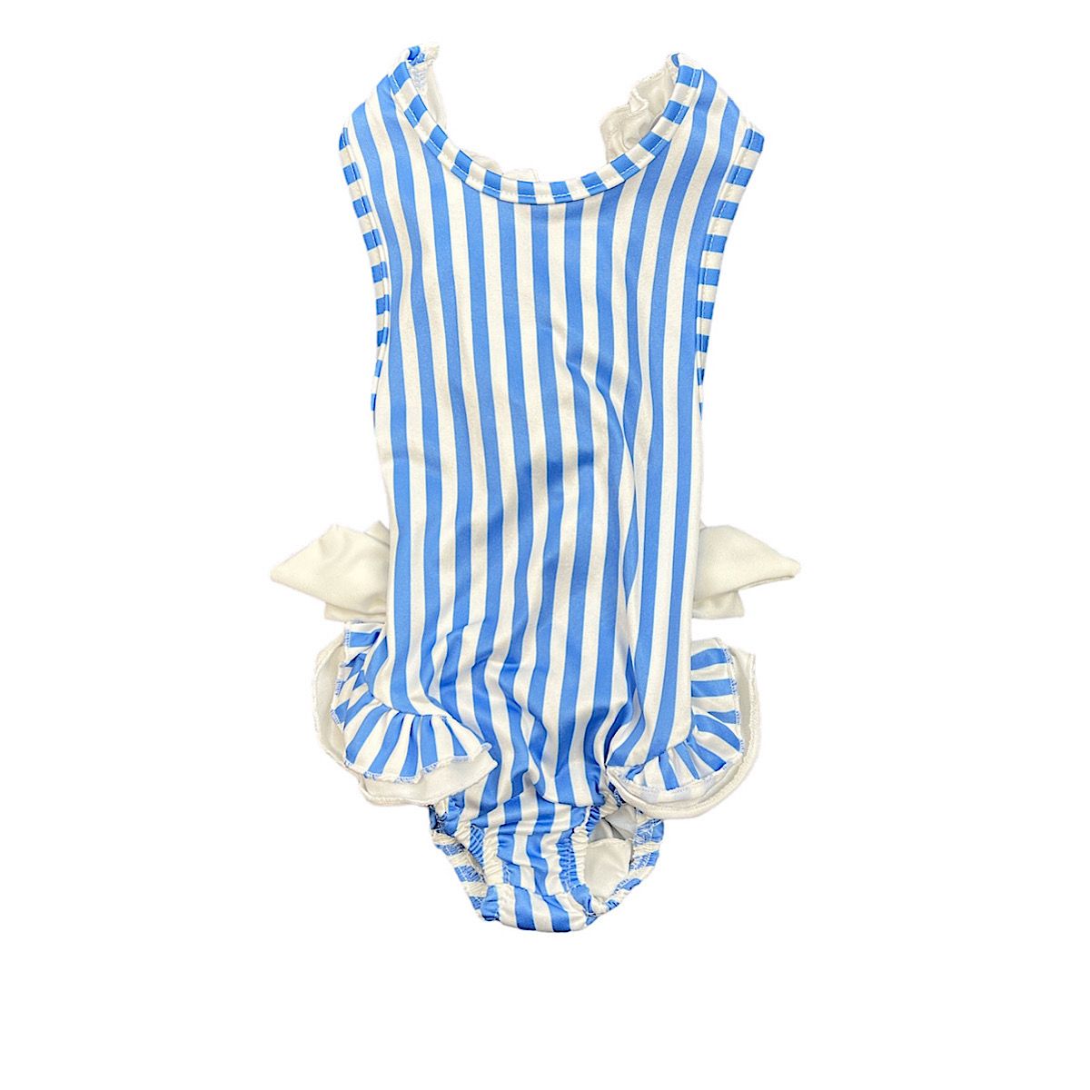 Blue Striped Ruffle Cross Back Swimsuit 12-24M
