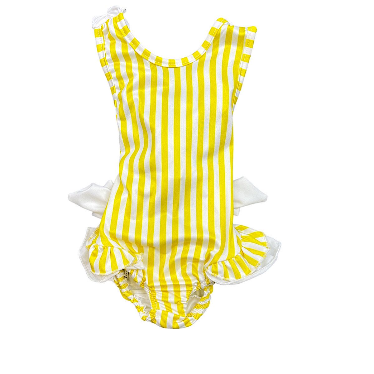Lemon Striped Ruffle Cross Back Swimsuit 12-24M