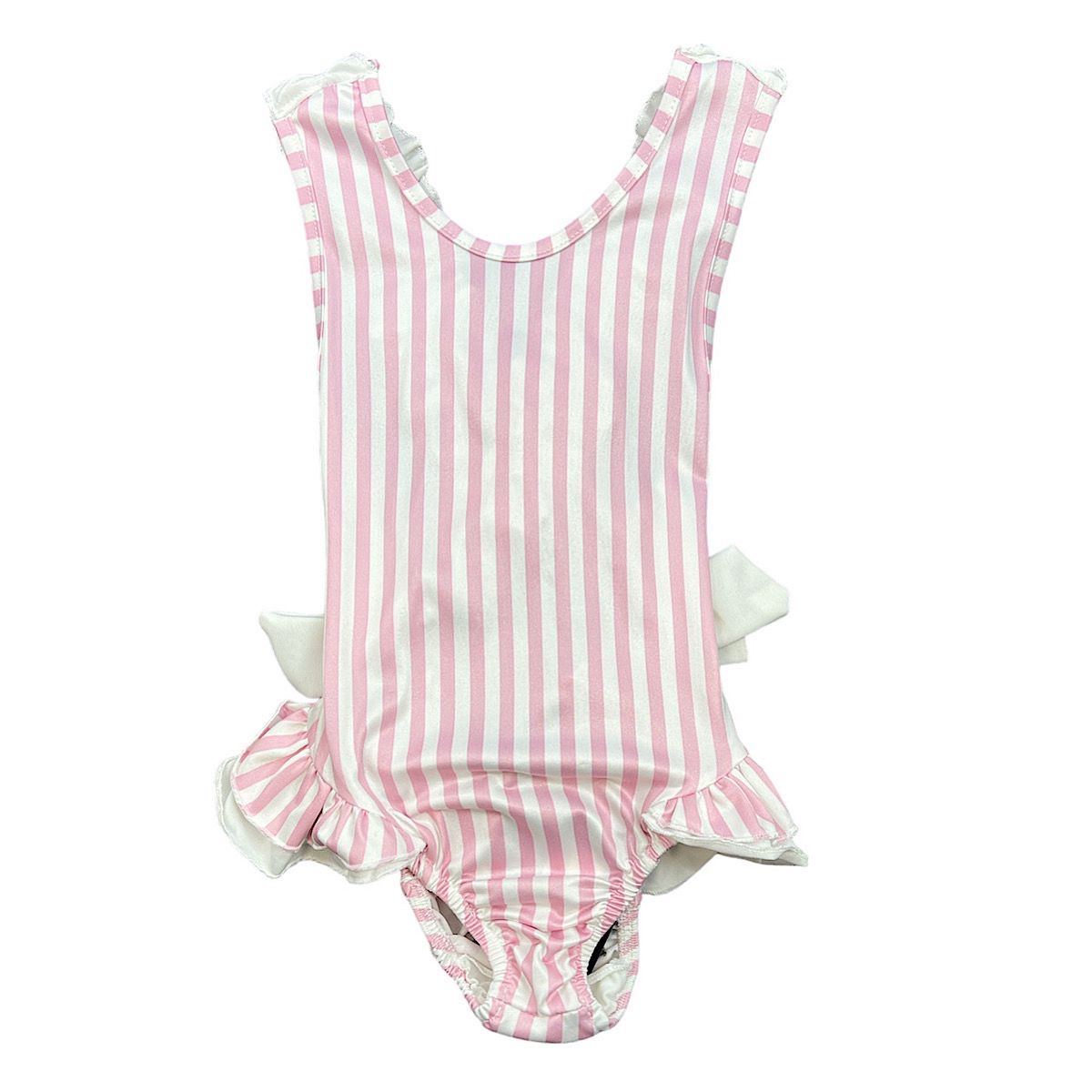 Pink Striped Ruffle Cross Back Swimsuit 2-8