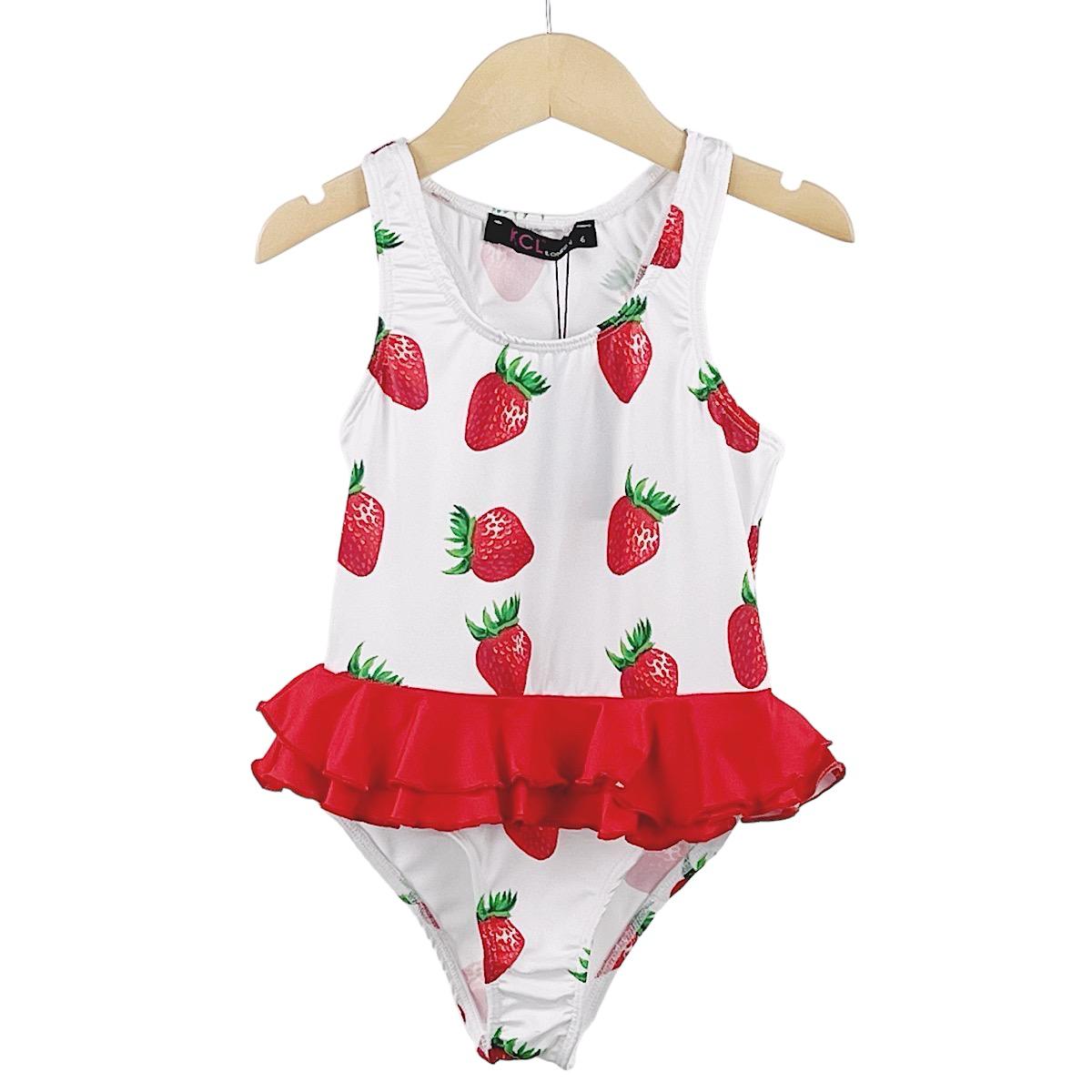 Girls Strawberry Bow Frill Swimsuit 2-8