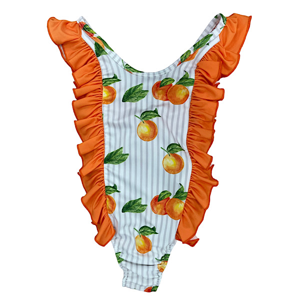 Girls Orange Pinstripe Bow Frill Swimsuit 2-8