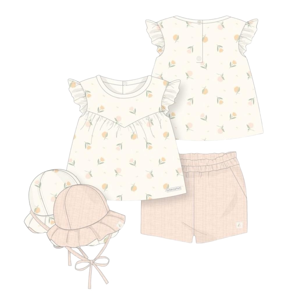 Girls Organic Fruit Motif Design Ribbed 3pc Set 0-12 Months.