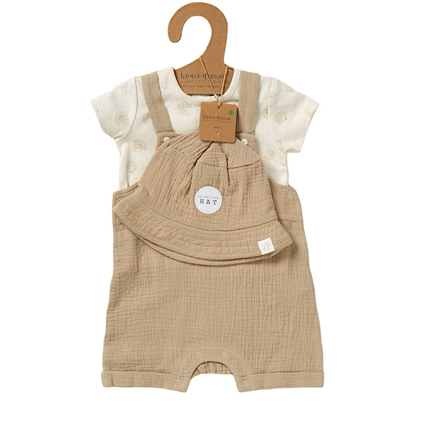 Boys Organic “Hello World” Dungarees 2pc Set 0-12 Months