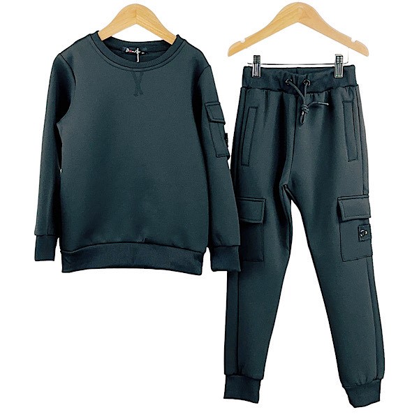 Unisex D/Grey Piped Hoodie 2PC Lounge Set 2-10