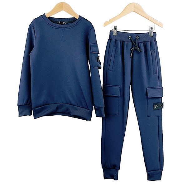 Unisex Navy Piped Hoodie 2PC Lounge Set 2-10